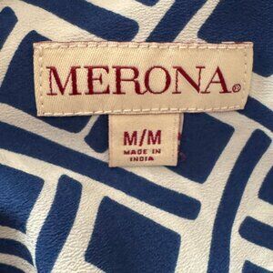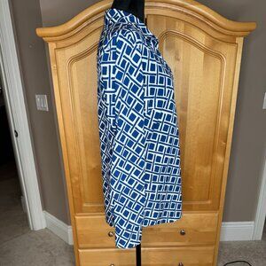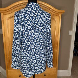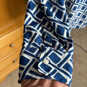 Merona Blue & White Geo Design Long sleeve Button-Down Blouse, Sz M