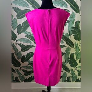 Gently used. Tiny spot on the side where stitch is lose but no holes. Stretchy. Back slit and back zipper. Unlined. Pit to pit measures 17.5 inches across front. Waist measures 15 inches across front. Length measures 37 inches from shoulder to hem.