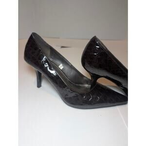 Elevate your style with these Merona brown faux leather snakeskin heels. The pointed toe pumps have a stiletto heel style. The animal print pattern adds a touch of boldness to your outfit, making it perfect for wear to work or any occasion. These classic pumps are available in size 7 and have a medium width. They are made of man-made materials and have a country/region of manufacture of China.