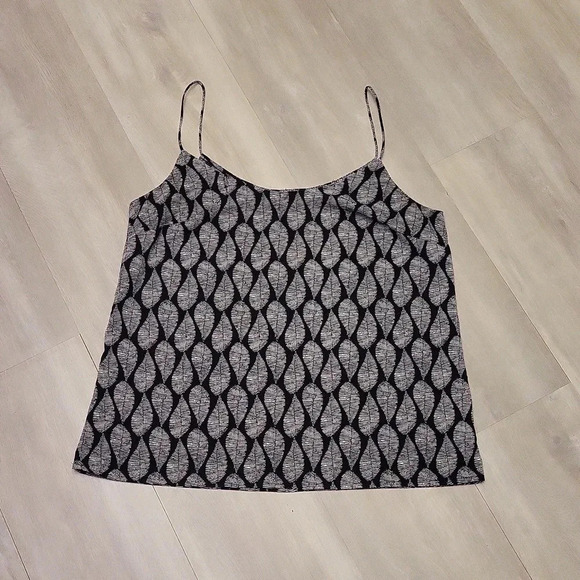 🛍Merona Cami Spaghetti Strap Tank Black White Leaves Womens Size Medium