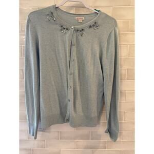 Merona Cardigan Light Blue Gem Collar SIze L