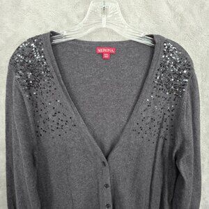 Merona Cardigan Sweater Bundle XXL Black White Grey Stripe Bling Button Up Knit