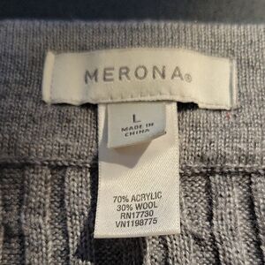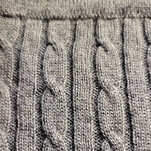 Chic charcoal midi skirt with cable knit design. Perfect for versatile styling. length 21 inches, waist 18 laying flat