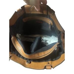 Merona Cognac Faux Leather Satchel Tote Laptop Messenger Bag NWOT - still has the tissue paper inside. See pics for measurements. Great commuter, work or school bag. Lots pof different compartments for storage and organization.