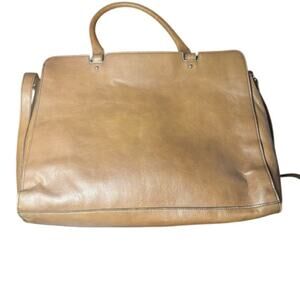 Merona Cognac Faux Leather Vegan Satchel Laptop Messenger Bag NWOT commuter