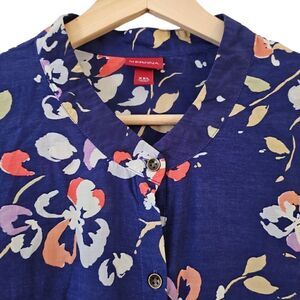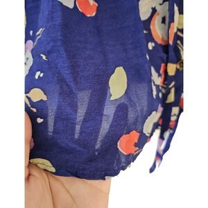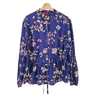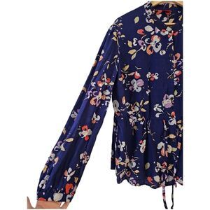 Merona Cotton Blend Blue Floral Tie Waist Long Sleeve Blouse Top XXL