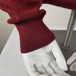 Beautiful wine colored long sleeve sweater that buttons up the front and has an attractive v-neck when completely buttoned! Comprised of a nice cotton blend makes this the perfect sweater for spring and fall!