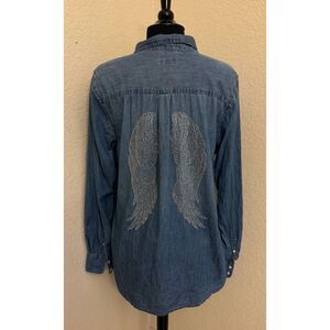 Merona Denim Button Down with Wings/Embellishments-Sz XL