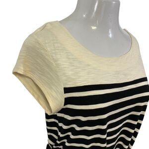 Merona Dress Womens Medium Stripe Belted Coastal Preppy Nautical Black Cream