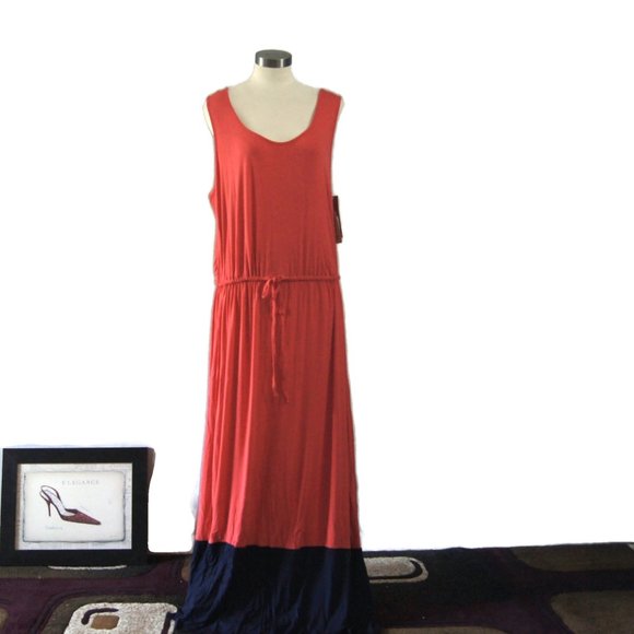 Merona Dress XL Berry Navy Sleeveless Maxi Scoop Neck Drawstring Waist NWT
