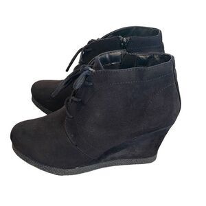 Merona Faux Suede Ankle Boots Heeled Size 7 Black Lace Up Zip