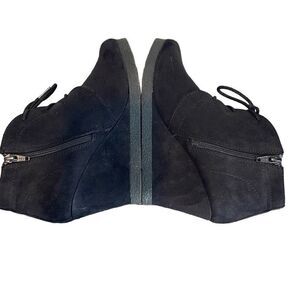 Faux suede wedge lace up booties with inside ankle zippers. Heel is solid and measures 3”