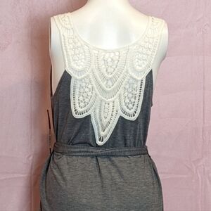Merona Gray Belted Lace Back Scoop Neck Sleeveless Maxi Dress size Small