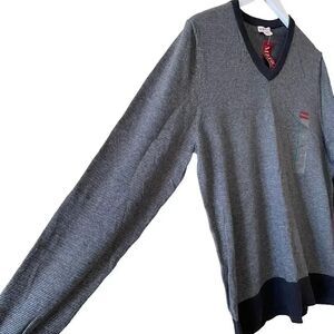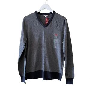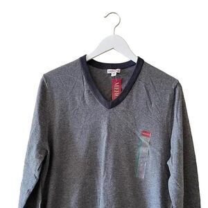 Merona Gray Black V-Neck Cotton Lightweight Soft Cozy Long Sleeves Unisex Sweater SZ M