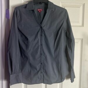 Merona Gray Long sleeve collared button up blouse Size XL 26.5 length 24.5 sleeve length 21.5-22” pit to pit