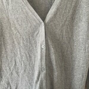 In nice condition! Soft, cozy material but still thin and ideal for layering! Can be dressed up for the office or dressed down for a casual night in or dinner. V neck is stunning and can be worn alone for a sexier feel, or with a mock neck underneath for a cute fall outfit! All buttons in good shape! A staple for a wardrobe!