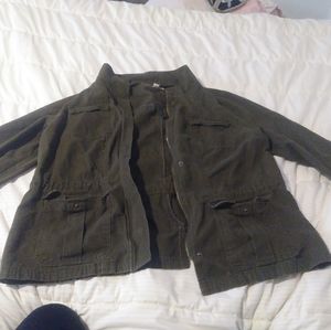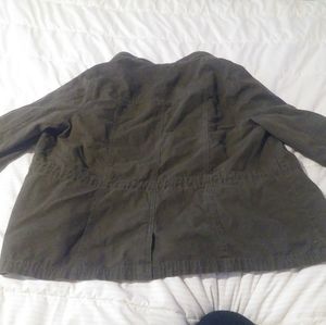 Dark green utility jacket with 4 pockets in the front with zipper and buttons down the middle. In great condition. If there are any questions please feel free to ask them🌟