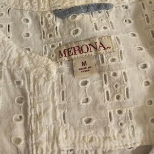 Merona Keyhole Lace Blouse Sz M. Pre-owned condition-one small pull on back of shirt.