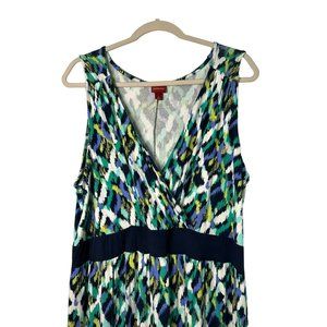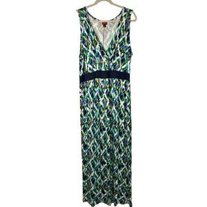 Experience summer elegance with the Merona Ladies Long Maxi dress. This sleeveless, V-neck dress boasts a multicolored design in green, white, and blue. Perfect for a chic, breezy summer look. Dress size is 1.