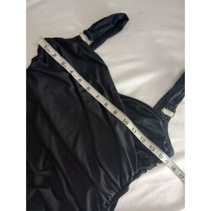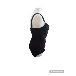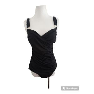 Merona Ladies Medium Black Sexy One Piece Swimsuit Ruched Tummy Hiding Gold