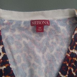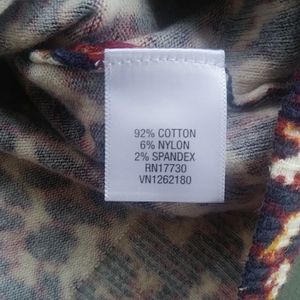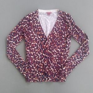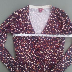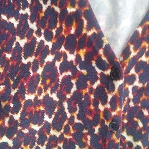 Blue, yellow and red leopard print cardigan from Target. Size XS, refer to measurement photos. Please note third picture. Navy blue is faded from wash, typical of darker colors.
