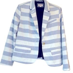 Merona Lined Chambray Blue and White Stripe Cotton Button Blazer Size 10
