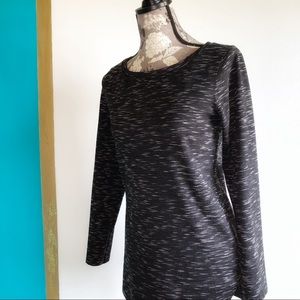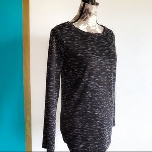 Heathered Black, Long Sleeve From Merona. Features zipper at back of neck. Very soft and comfortable. Would look adorable tucked into some distressed boyfriend jeans or some black leggings.