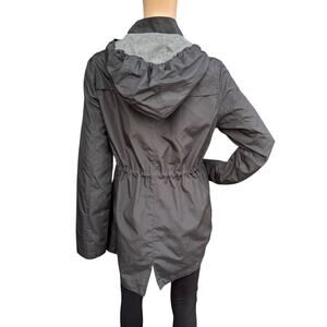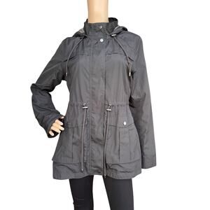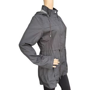 Merona M Anorak Jacket Dark Gray Hooded Raincoat Drawstring Waist Parka