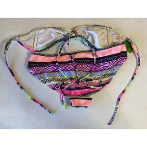 Hoodie shows minimal signs of wear, no visible damage. Tee and bikini in good condition.