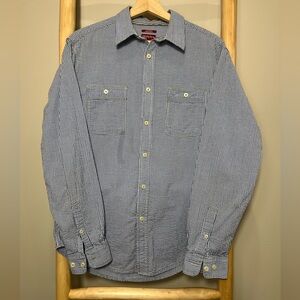 Merona Medium Tailored Fit blue white gingham button down long sleeve with front pockets