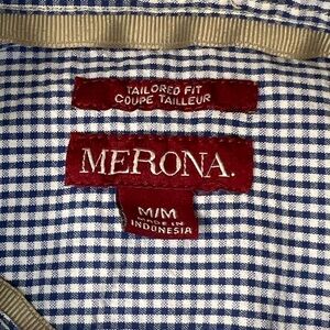 Merona Medium Tailored Fit blue white gingham button down long sleeve