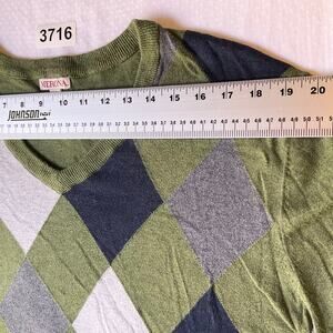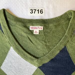 Merona Men Sweater size XL Long Sleeve Knit V-neck Plaid Green & Gray