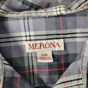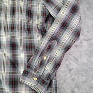 Merona Men’s Plaid Button Up Shirt L Gray Red Long Sleeve Casual Flannel Look
