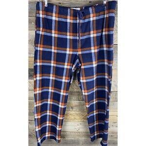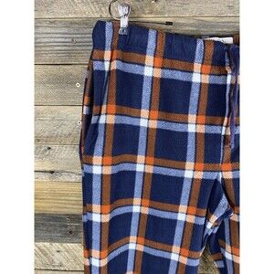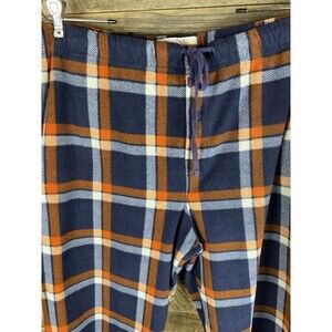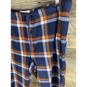 Merona Men's Sz XL Blue & Orange Plaid Fleece W/Drawstring Waist Pajama Lounge Pants