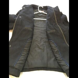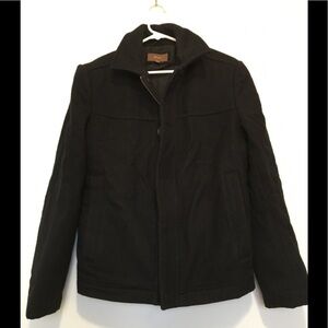 Merona Men’s Wool Coat Preowned condition, no holes or stains, size small, side pockets, button zipper closure , missing 1 button, 2 interior side pockets for your small items, no trades