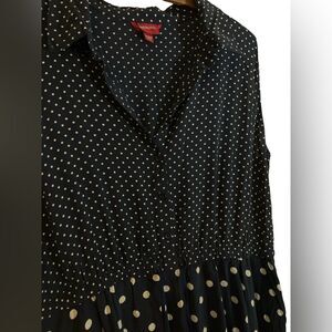 Merona dress. Navy with big polka dots and little polka dots. Tie and elastic waist.