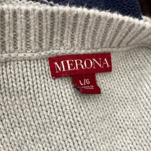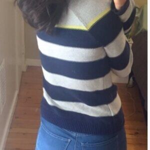 Merona Navy Gray Yellow Stripe Long Sleeve Pullover Sweater Large