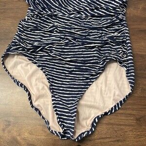 Merona Navy & White Striped Faux Wrap One Piece Swimsuit Size Medium