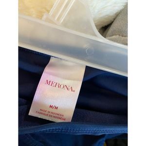 Merona Navy Blue Polka Dotted Size Medium 2 Piece Padded Tankini Swimsuit