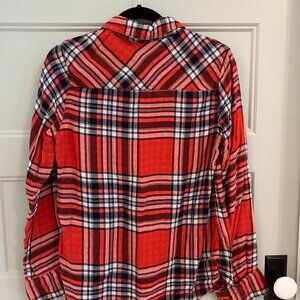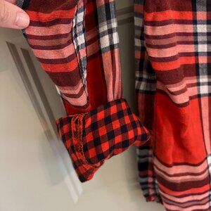 Orange, Black, White & Purple Plaid with orange & black check cuff accents