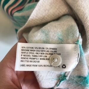 Features: Cream sweater with green palm leaf print, cropped sleeves, button-up front
