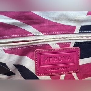 Merona Patent Chain with Turnlock Closure Pink and white Clutch