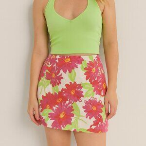 Merona Pink Floral Mini Skirt Y2K 2000s Lined Cotton Summer Skirt Size 10