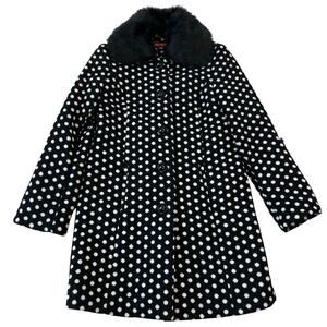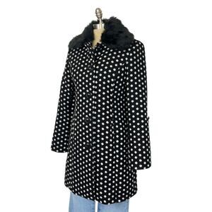 Merona Polka Dot Wool Blend Faux Fur Collared Button Front Long Coat (Sz M)
