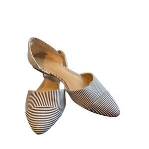 Merona Poppy D'orsay Blue White Pinstripe Pointy Toe Ballet Flats SZ 10 Shoes