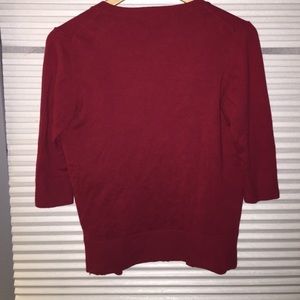 This cardigan from Target is a red/maroon color and runs in a Size small! It's in really good condition and looks really cute on!