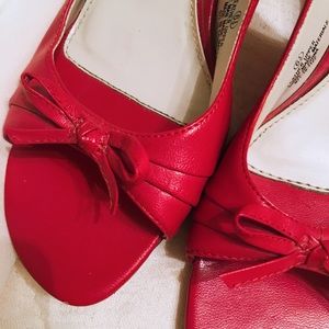 Like New, Worn Twice👠 MERONA® Red Peep Toe Slingback Mini Heels with Small Bow detailing. Size 6.5. Balance Man Made Materials Item# 077-19-1122. Small sign of wear on back, as shown in photo. Pls ask all questions & view pics before buying 🙋🏼💖😘