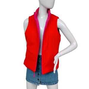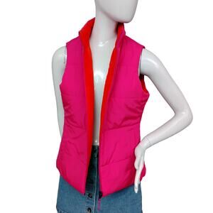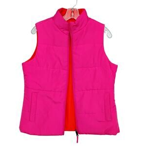 Merona Reversible Puffy Vest Size Medium Orange and Hot Pink Full Zipper Pockets