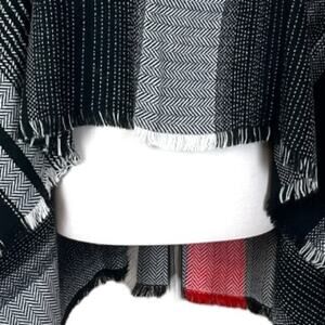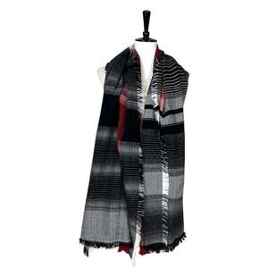 Merona Scarf Wrap Shawl Oblong Fringe Black Red White Plaid Women’s One Size