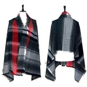 Blanket Scarf Wrap Shawl Oblong Fringe Black Red Plaid Women’s One Size
